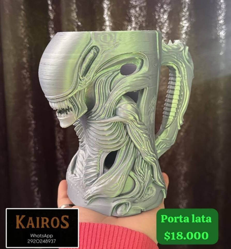 Porta lata / vaso inspirado en la criatura Alien, con estructura 3D detallada.