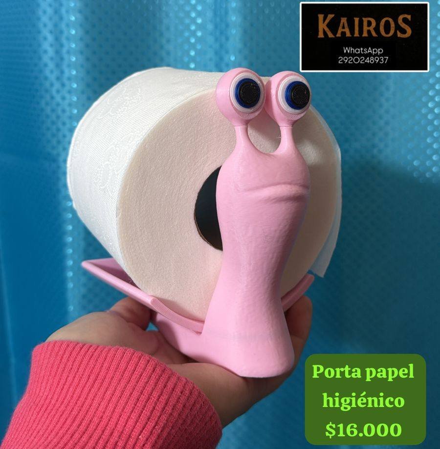 Porta papel higiénico en forma de caracol color rosa.