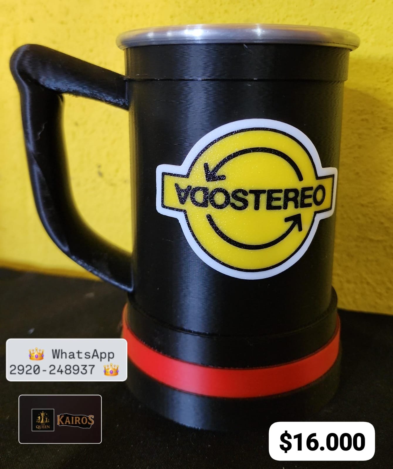 Taza personalizada con el icónico logo de Soda Stereo, ideal para fans de la banda.