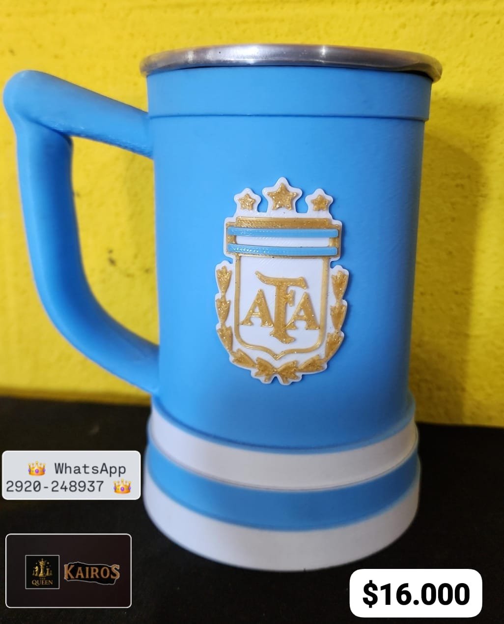 Taza termo modelo AFA con relieve 3D, fabricada en material plástico de alta resistencia con interior metálico.